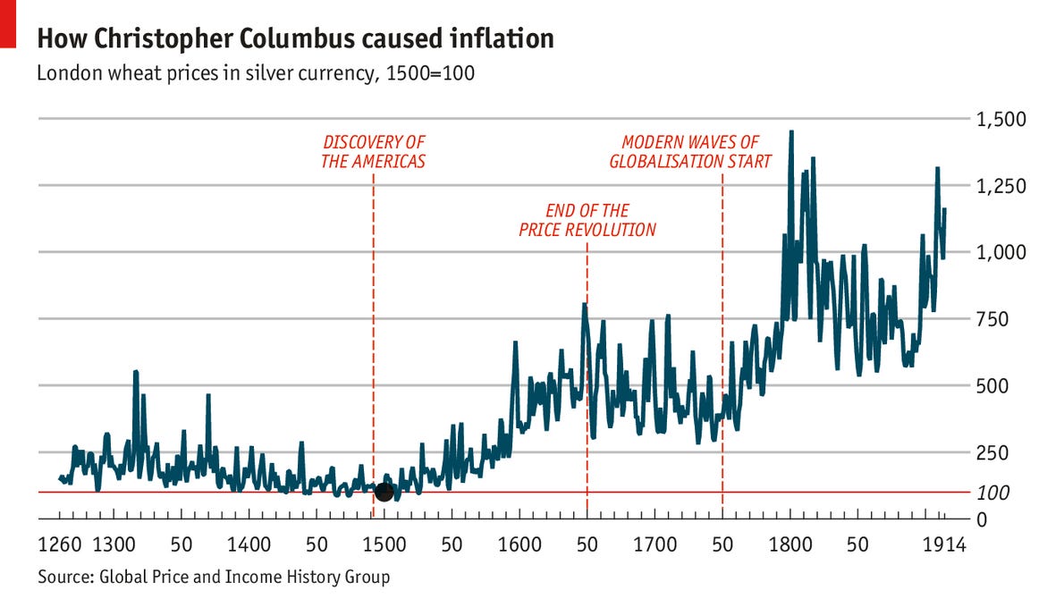 The consequence was what historians call the Price Revolution: a sustained, multi-decade rise in prices across Europe that contemporaries found deeply disorienting and that economists have been analysing ever since. The Flemish economist Jean Bodin identified the mechanism at the time. The scholastics of the Salamanca School - the Spanish precursors of what we later called sound money theory - analysed it in real time with remarkable precision. The money supply expanded massively, not through the decree of any sovereign or the policy of any central bank, but through the brute geological accident of finding a mountain made of silver. The consequence was exactly what sound money theory predicts: the purchasing power of the monetary unit fell, systematically and over a sustained period, in proportion to the increase in supply. It is monetary debasement through abundance rather than through coin-clipping, and it teaches the same lesson.